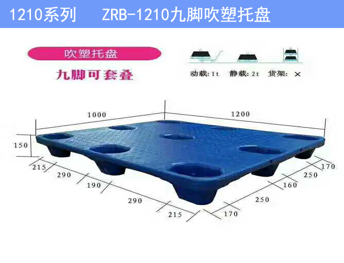 1、吹塑托盤承載大,動載達到2噸以上。